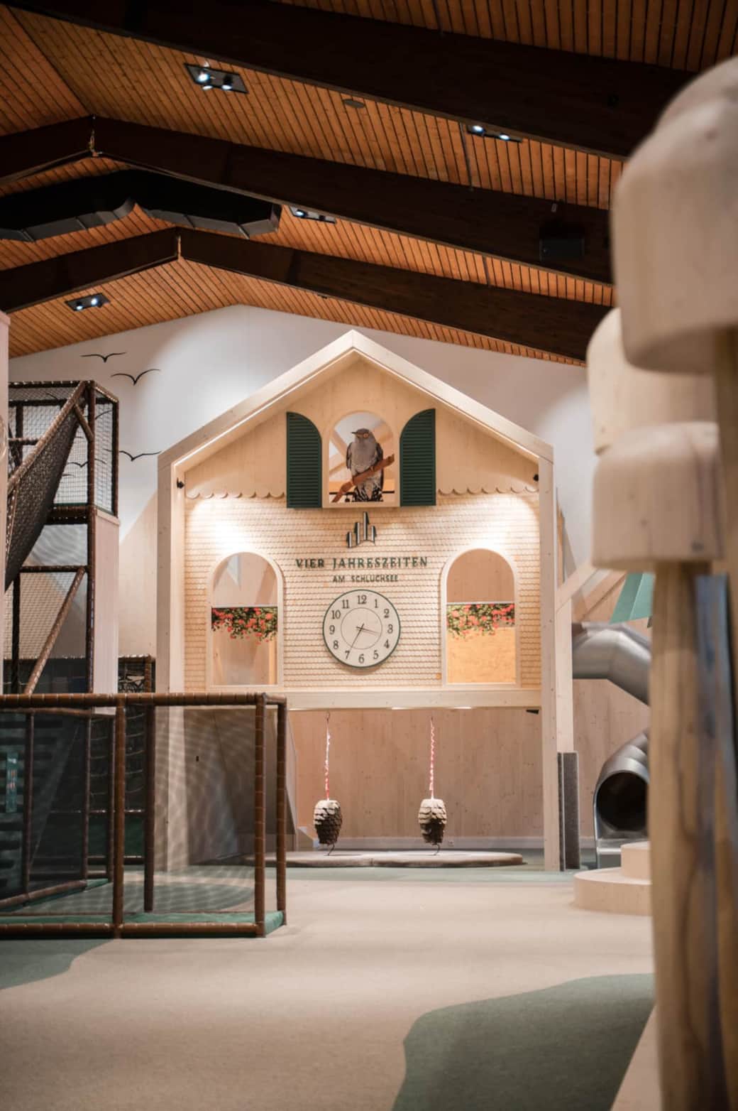 Nur eine Minute Fußweg vom Ferienressort Kurhotel Schluchsee entfernt befindet sich das Hotel Vier Jahreszeiten. Dort gibt es jetzt den neuen Indoorspielplatz "Zum Kuckuck" mit vielen Attraktionen für Kleinkinder genauso wie für Teens. Während die Kinder toben können, ist bei den Eltern Entspannung angesagt. Der Spielplatz ist auch für Feriengäste geöffnet, die nicht im Hotel Vier Jahreszeiten gebucht haben.